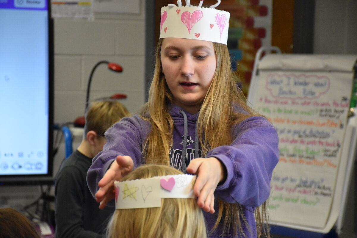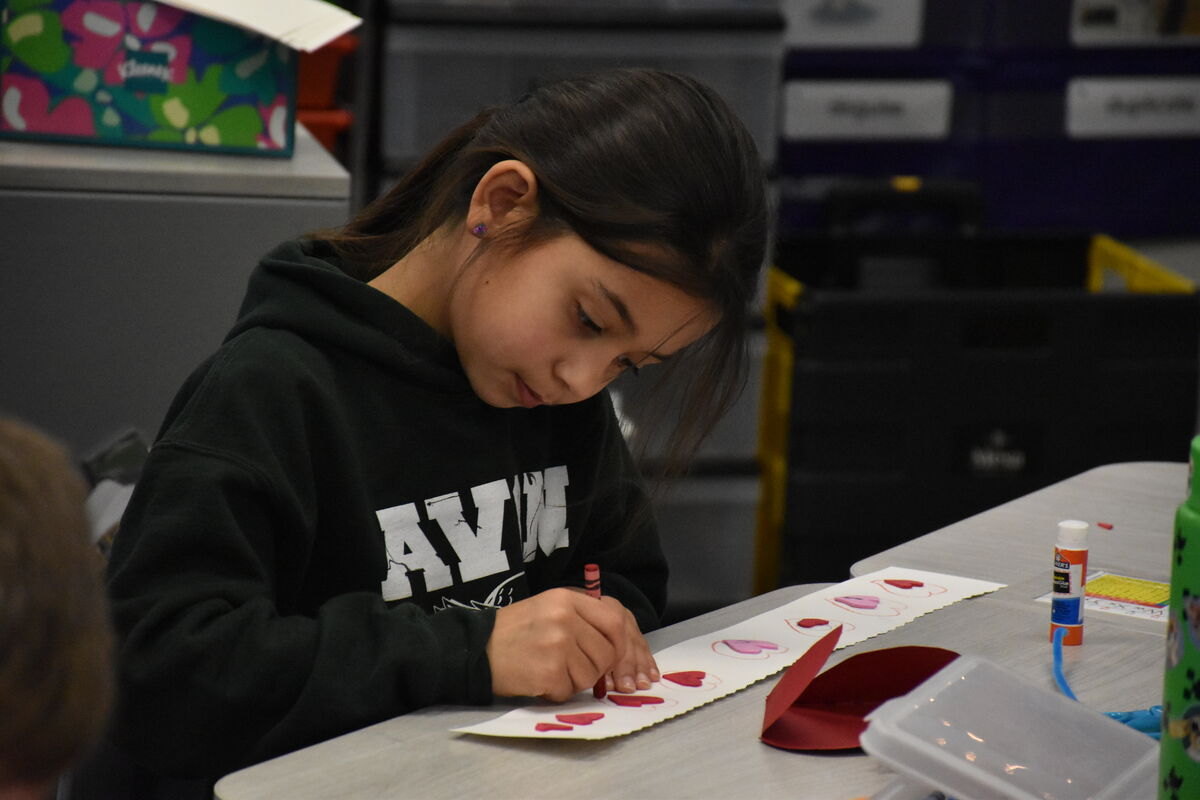 Art club leads 2nd graders in Valentine's Day crafts
