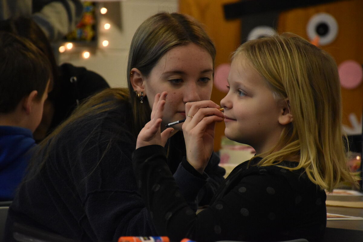 Club members headed to Mrs. Tina Fortune’s 2nd grade classroom for some face-painting and Valentine’s Day crafts!