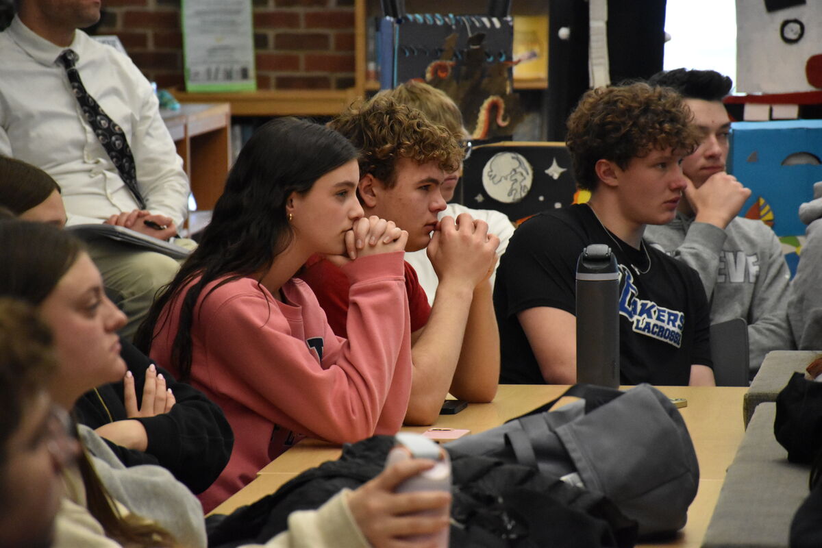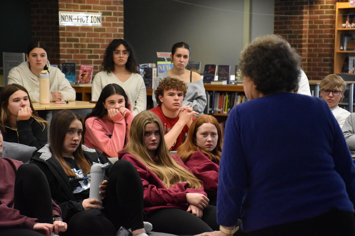 Students in Mrs. Emily Schroeder’s genocide course assembled in our high school library last week to hear from two speakers with close ties to The Holocaust.