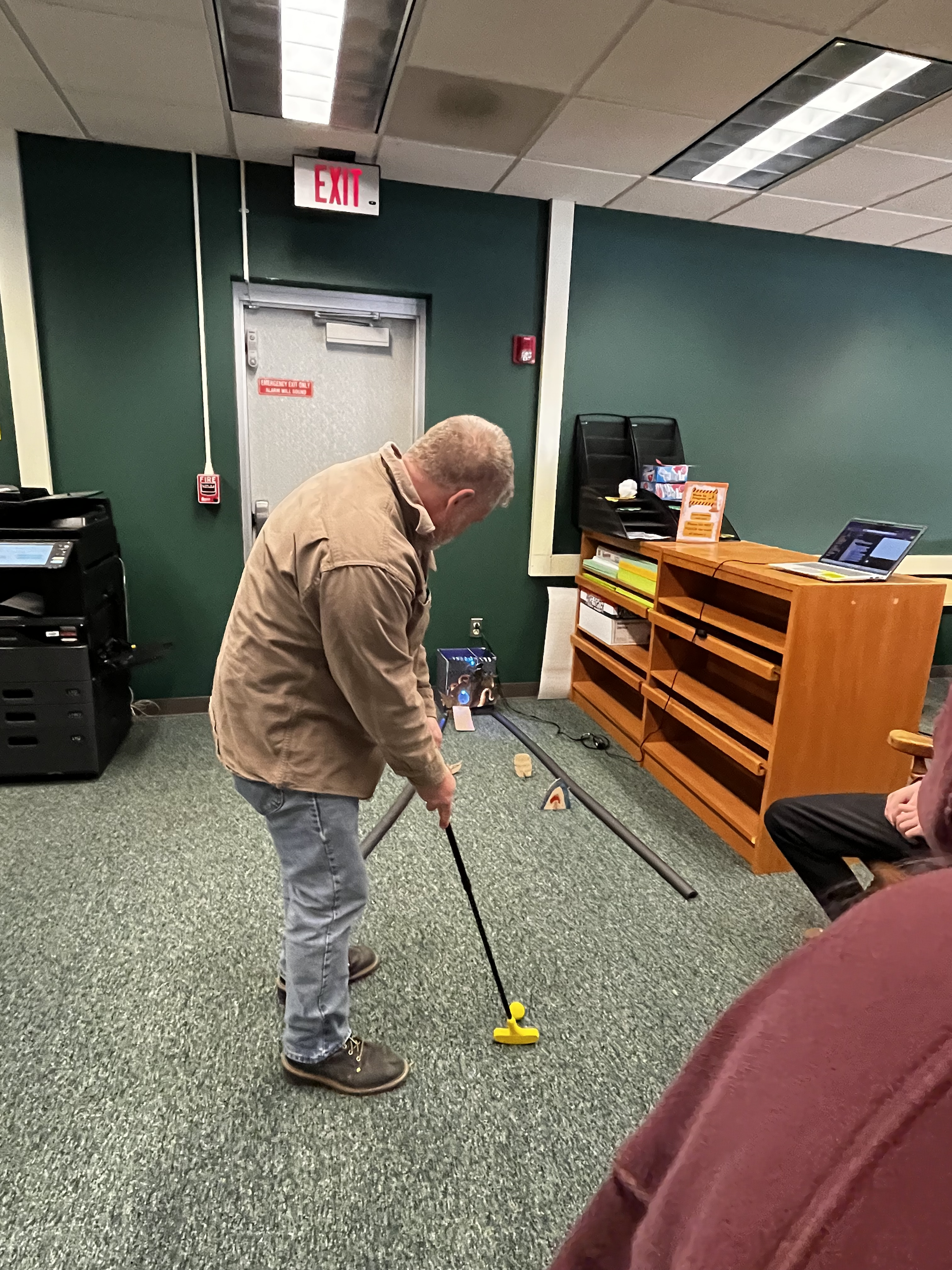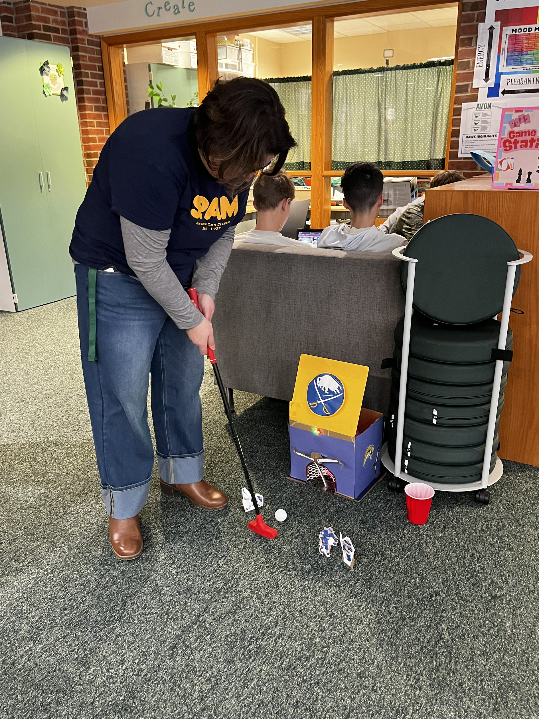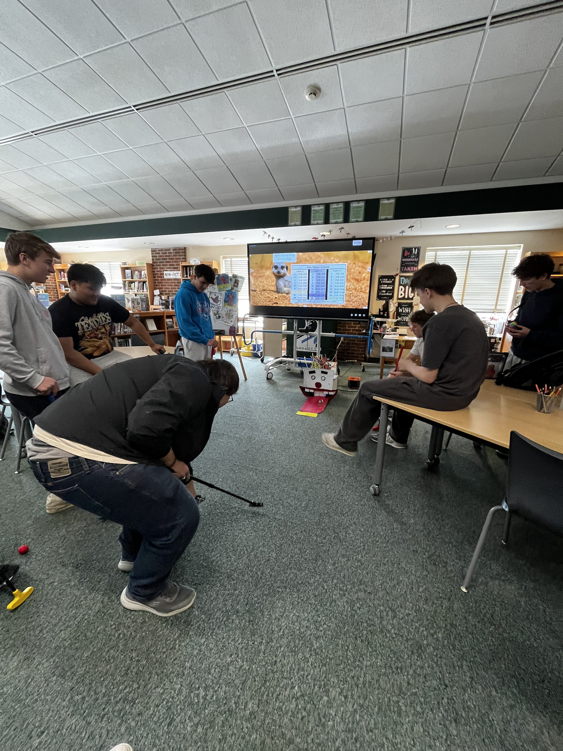 Lydia D’Amato’s advanced computer students wrapped up work last week on their projects to design, program and construct a mini-golf hole, then headed down to the library to test their creations.